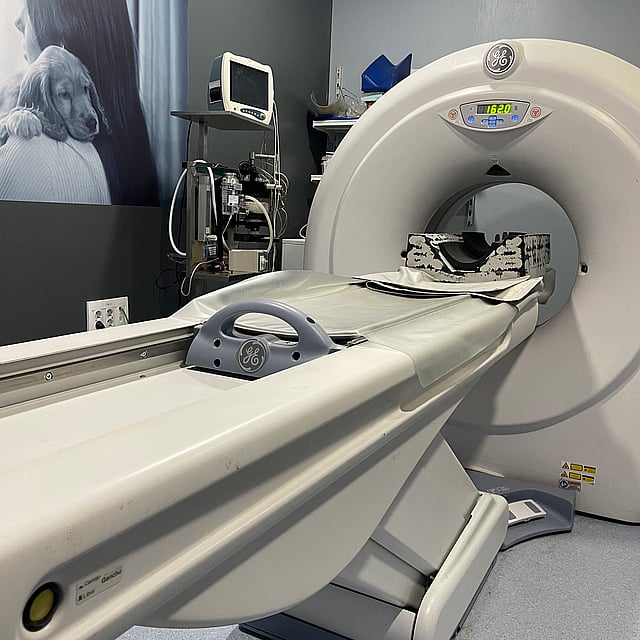 Se coloca al animal sobre una camilla que se desliza a través del escáner. Los tubos emisores de rayos X giran en torno a la mascota enviando rayos a través de su cuerpo desde distintos puntos, los cuales son captados por detectores en el lado opuesto respecto al perro. Los tejidos del cuerpo emiten distintos niveles de radiaciones en dirección a los detectores. Cuanta más radiación llegue al detector, más oscura aparecerá el área correspondiente en la imagen. A mayor dureza y densidad de un tejido (por ejemplo, el esqueleto), menor será la radiación que se libera hacia el detector. El tejido en cuestión aparecerá de color blanco en la imagen.